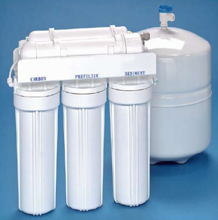 5-stage reverse osmosis unit filters 50 gallons per dayReverse Osmosis is, simply put, the most effective and economical way to provide your family with high quality drinking water. Water molecules are forced by your household water pressure through a semi-permeable membrane that rinses contaminants to the drain so all that remains in the holding tank is high-quality, filtered water.